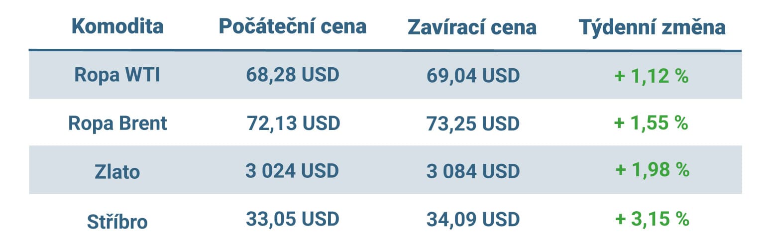 Komoditám se v uplynulém týdnu výrazně dařilo