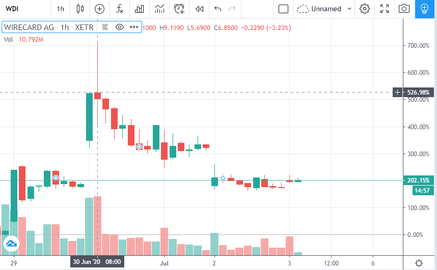 30. 6. 2020 – některá média se snaží informovat o senzaci a hlásají, že akcie Wirecard vzrostly o 150 či 300 % (někteří dokonce tvrdí, že o 500 %).