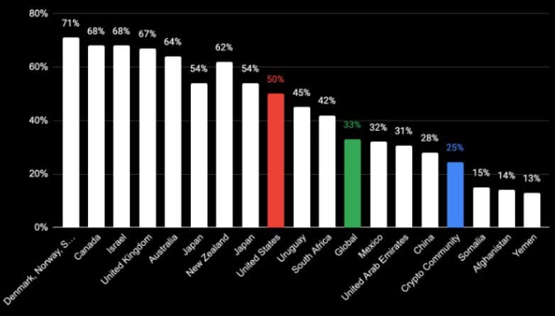 Porovnání finanční gramotnosti kryptoměnové komunity s průměrem jednotlivých států