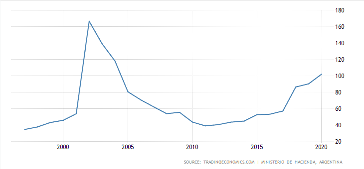 Argentina bývá dávaná za odstrašující příklad států, který má za celou svou existenci (od roku 1816) již devět bankrotů a vše v doprovodu extrémní inflace. Jenom poslední dva bankroty se odehrály za posledních dvacet let – 2002 a 2020. Ještě předtím Argentina vyhlásila bankrot v roce 1982, což bylo období hluboké bankovní krize. Argentina v podstatě zbankrotuje, odepíše podstatnou část svého dluhu, funguje dál a zase se zadluží.
