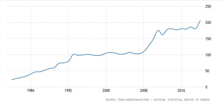 Jak vyplývá z grafu, v roce 2002 činil vládní dluh vůči HDP enormních 166,7 %. Samotný bankrot byl vyhlášen při 75 %. Tady vidíte, že stačí i relativně nízké zadlužení vůči HDP, aby to bylo pro stát neudržitelné. Leč nedá se to všeobecně aplikovat, protože každá ekonomika má svá specifika. Obecně se dá ale říct, že dokud není hyperinflace, občané platí daně a měna je pevná, zadlužení může být vysoké, aniž by došlo k bankrotu.