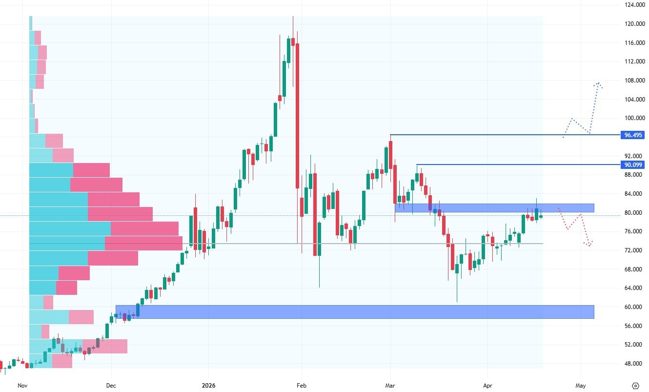 Pokud projeví dostatečnou agresivitu a po průrazu hranice 80 USD vznikne silné momentum, můžeme se dočkat velmi rychlého návratu stříbra k vyšším hodnotám.