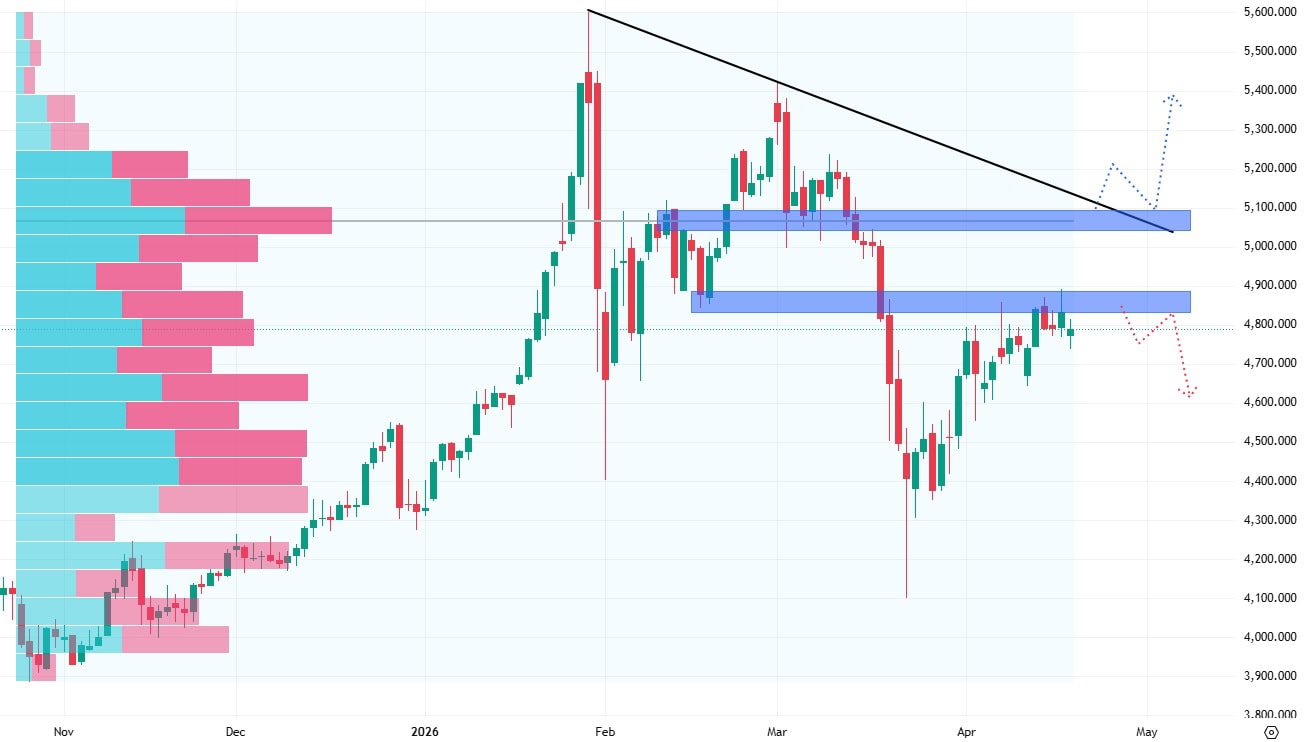 Pokud bude cena zlata i nadále růst, stane se pro ni klíčovou úroveň okolo 5 100 USD, kde se nachází další výrazná rezistence.