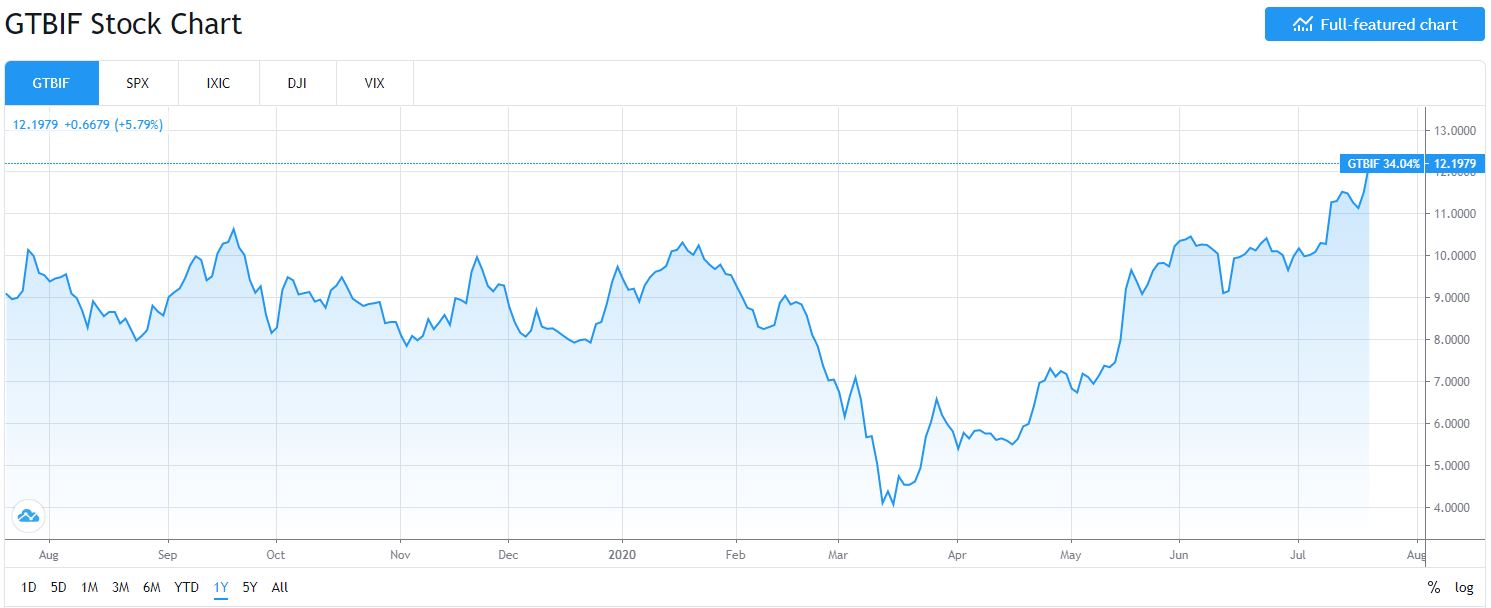 Vývoj akcií Green Thumb Industries za poslední rok