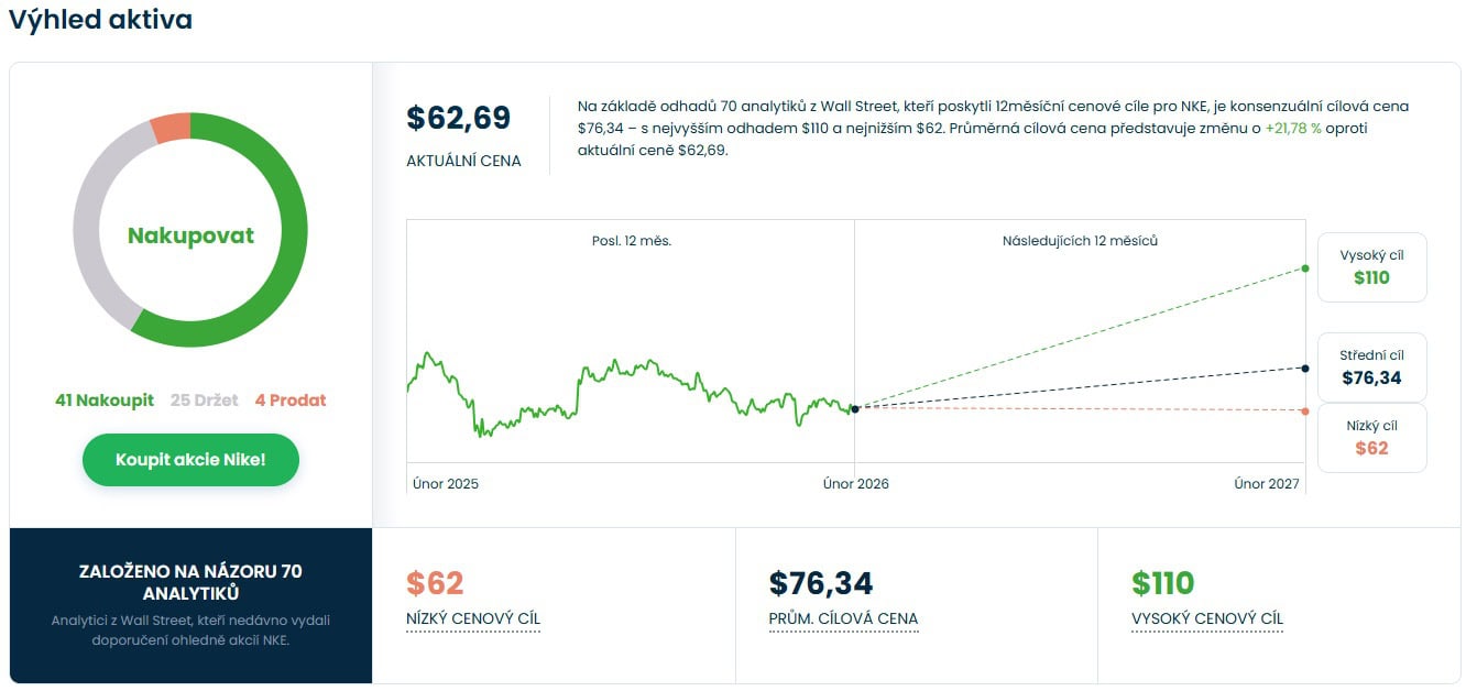 Cenová predikce pro akcie Nike od analytiků z Wall Street