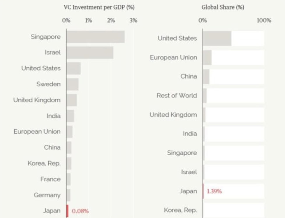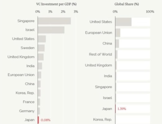 Rozdíl je až šokující. Roční objem investic do startupů v Japonsku byl dlouhá léta řádově nižší než v USA nebo Evropě, a to i po přepočtu na velikost ekonomiky.
