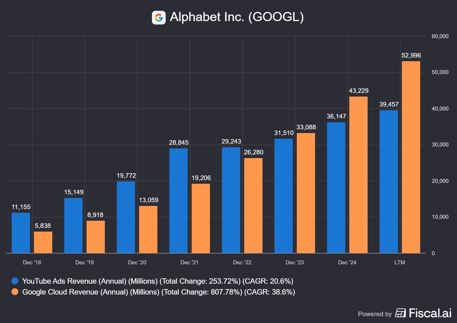 Alphabet naopak dominuje ve dvou svých segmentech. Tím nejsilnějším je samozřejmě reklama, kde kombinuje sílu vyhledávače Google a YouTube platformy.