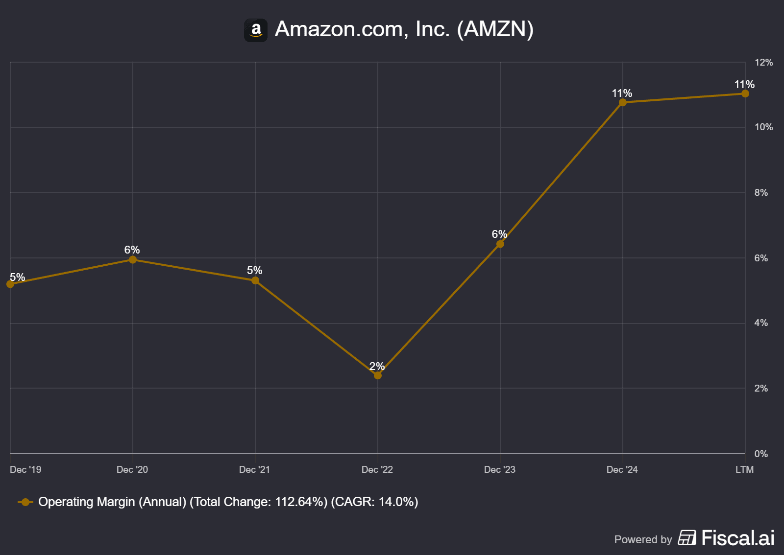Vývoj provozní marže u Amazonu