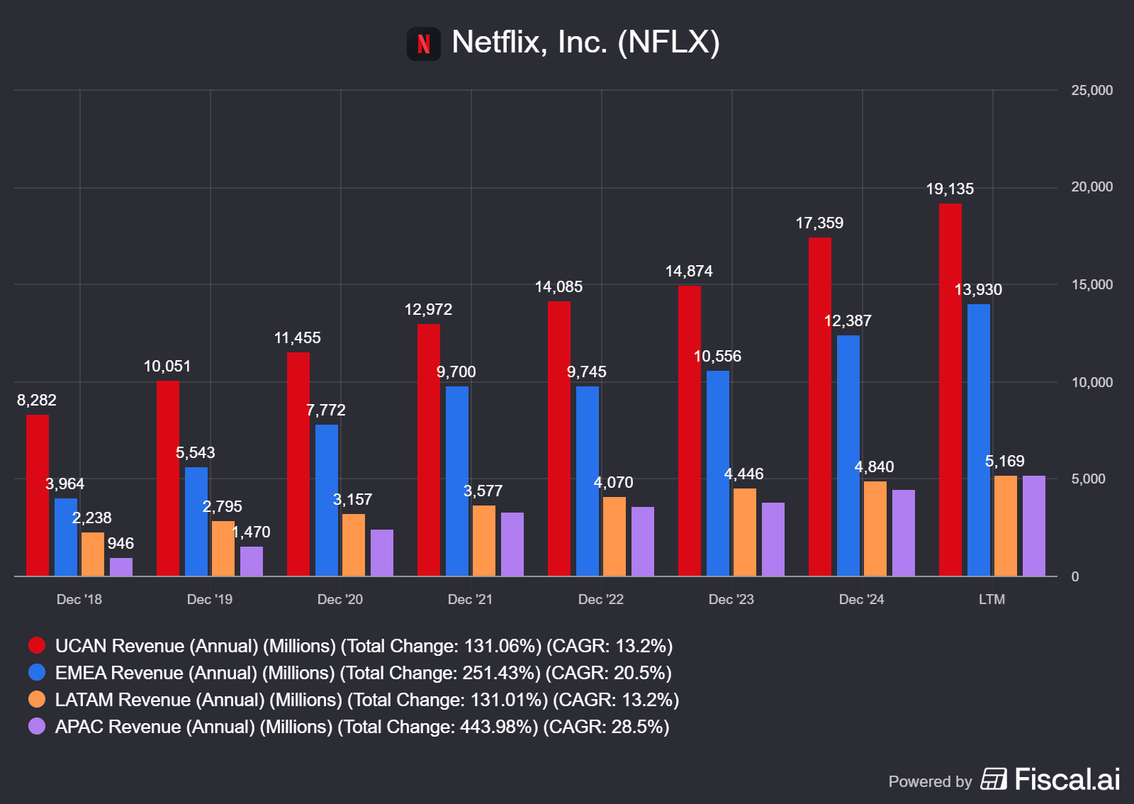 Jedná se o globální společnost, která podniká na trzích od východní Asie až po Latinskou Ameriku. Netflix stále těží z toho, že byl prvním, kdo služby tohoto typu začal nabízet.