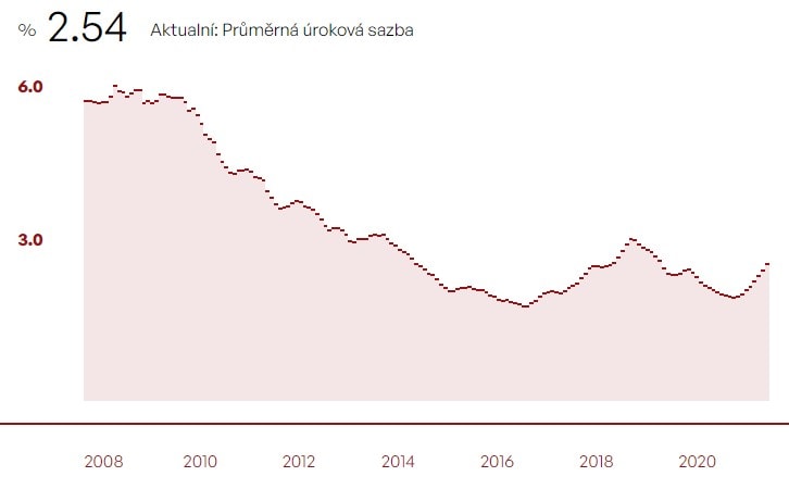 Průměrná sazba hypoték překročila v říjnu hranici 2,5 %