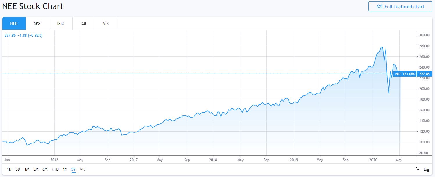 Další americkou společností obchodovanou na newyorské burze je NextEra Energy. Zabývá se výrobou obnovitelné energie z větru a slunce. Mimoto vlastní a provozuje výrobní a distribuční zařízení a investuje do plynárenské infrastruktury. Obnovitelné zdroje holdingu mají kapacitu 45 500 MWe a za posledních 15 let firma avizuje zhodnocení ve výši 945 %. Akcie NextEra se za předchozích pět let zhodnotily o 123 % a za poslední rok téměř o 17 %.