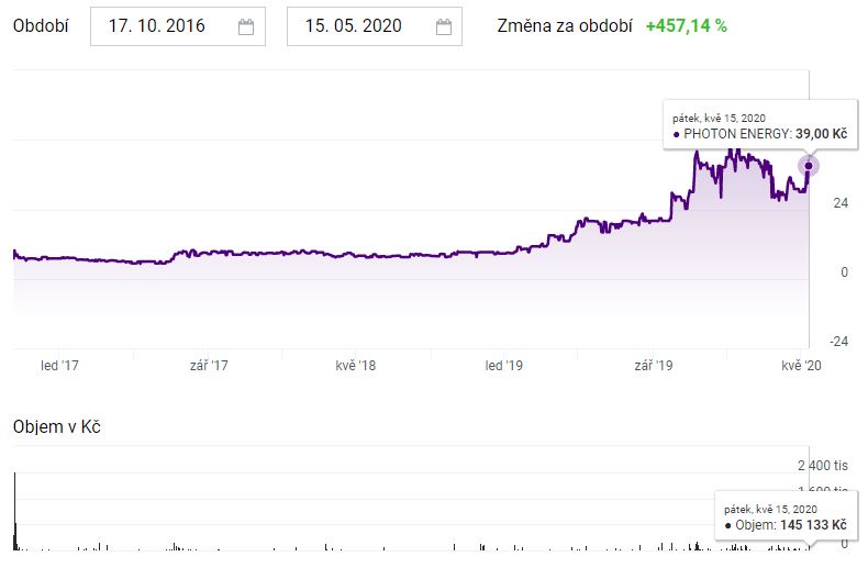Pro investice do čisté energie ale není třeba chodit daleko. Na pražské burze je obchodována Photon Energy, nizozemská společnost s českými kořeny. Jak název napovídá, Photon Energy působí v oboru solární energetiky, pro niž nabízí komplexní řešení.