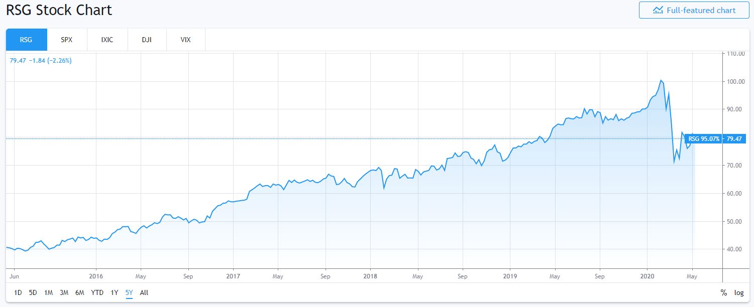 Vývoj akcií Republic Services za posledních pět let