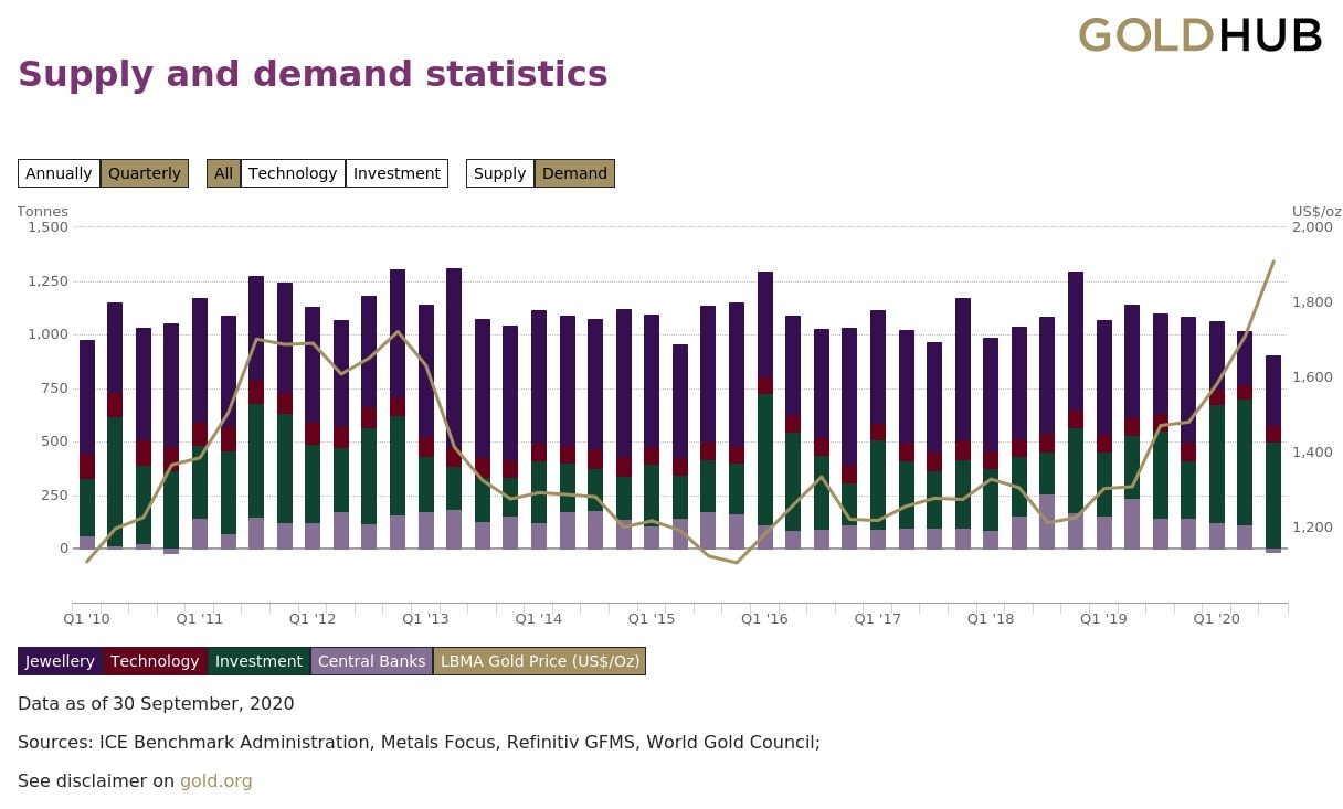 Jak sami vidíte, poptávka po zlatě je již léta vcelku stabilní. To je bez debat z fundamentálního hlediska v pořádku. Proč ale cena žlutého kovu tak strmě roste? Odpovědět konkrétně není vůbec snadné, ale jak jsem již nastínil, obrovský podílnesou centrální banky svoji expanzivní monetární politikou.
