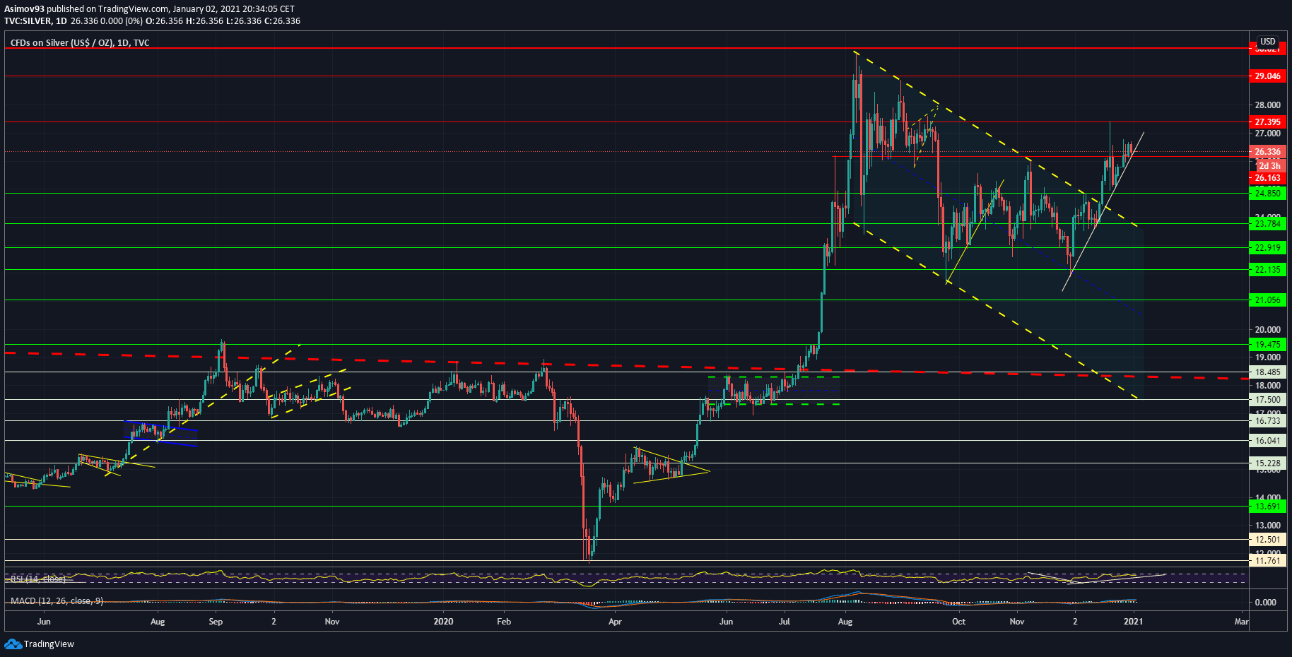 Objektivně lze vidět, že se zlatu se stříbrem velmi dařilo. Vzhledem k vyšší volatilitě je sice na stříbru zhodnocení větší, ale technicky vzato je na tom zlato samozřejmě lépe. Proč? Jednoduše proto, že dokázalo překonat původní historické maximum.
