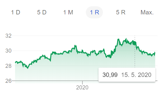 Kurz GBP (britské libry) vůči CZK a jeho pokles po 15. květnu (zdroj: google.com)