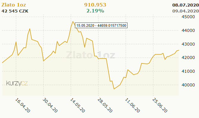 Poprvé po téměř devíti letech se cena zlata opět dostal nad cenovou hranici 1 800 USD za trojskou unci (tj. cca 31,11 g). Obecně se investice do zlata považují za bezpečný přístav, jelikož má tendenci růst v obdobích nejistoty. Patrně tedy strach ze zvyšujícího se počtu výskytů nákazy Covid-19 ve světě a potenciální příchod 2. vlny tlačí jeho cenu nahoru.