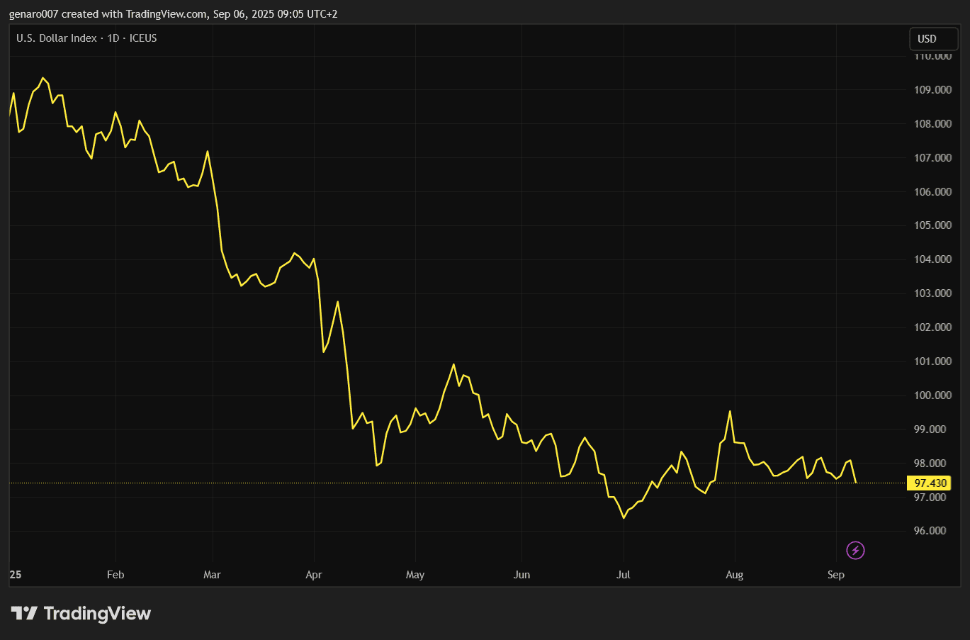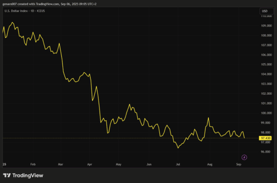 Vývoj dolarového indexu DXY od začátku roku