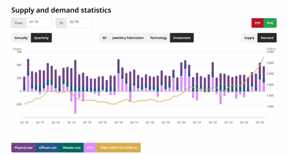 Vývoj poptávky po investičním zlatě.