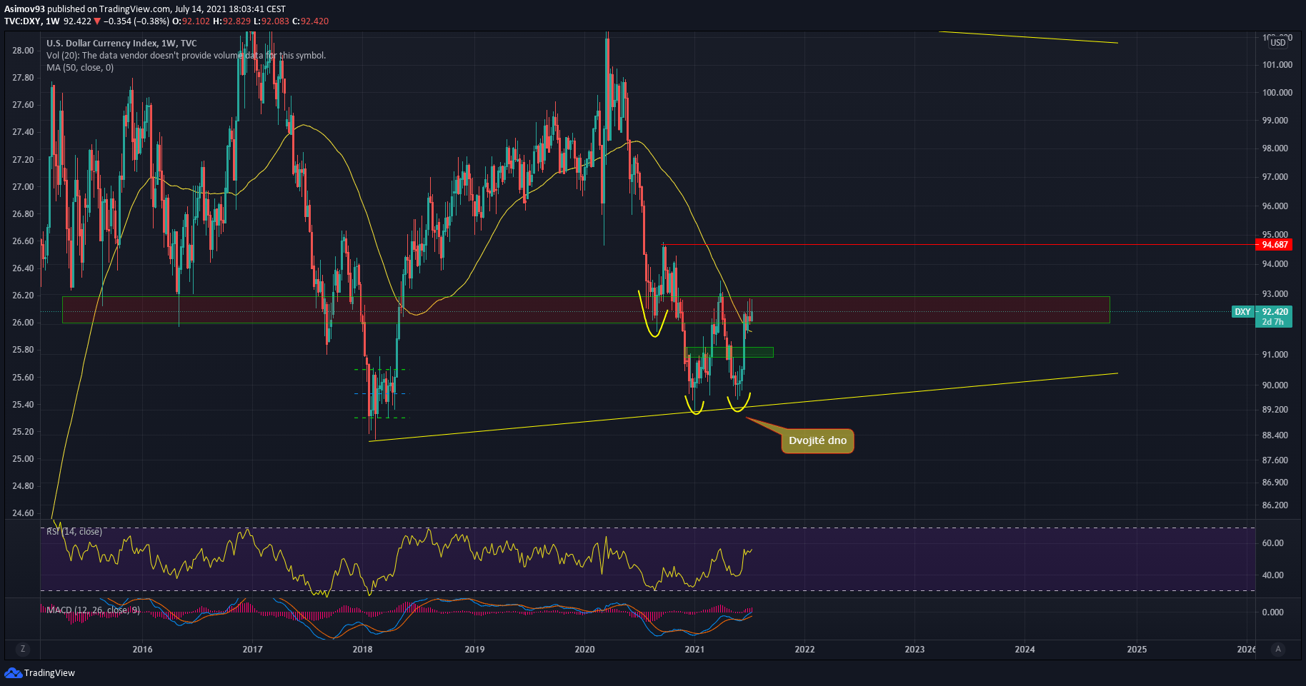 Jestli ale hodnota indexu začne dramaticky expandovat, pro tuto komoditu se nejedná o příznivý stav. Rostoucí hodnota dolaru růst ceny zlata přiškrtí. Proto je nutné sledovat, zda DXY prorazí a zůstane nad zmíněnými 92,5 body. Pak je velmi reálné, že americký dolar čeká několikaletý uptrend.
