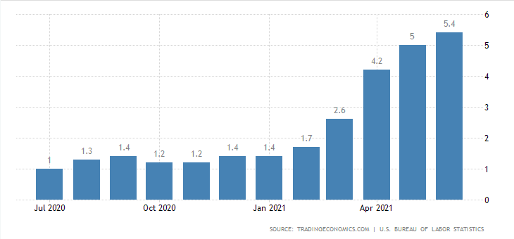A nová data jsou skutečně ve prospěch žlutého kovu, protože červnová inflace trhla nový rekord – 5,4 %.