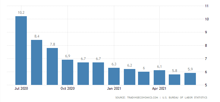Nezaměstnanost v USA. Zdroj: tradingeconomics.com