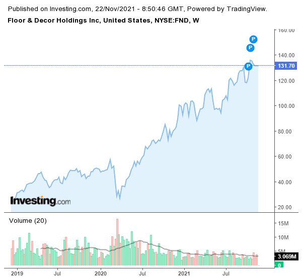 Druhou novou akvizicí byla společnost Floor & Decor Holdings. Jak název napovídá, společnost se specializuje na prodej vybavení a dekorativních prvků do domácností. Společnost má v USA, kde je její primární trh, přes 147 obchodů. Buffett nakoupil přes 816 tisíc kusů za 120,79 dolarů. Což při současné ceně 135 dolarů byla jistě dobrá investice.