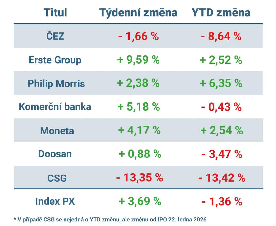 Pražská burza má za sebou opravdu povedený týden. Hlavní index PXvzrostl o 3,69 %, i když od ledna zůstáváme celkově stále lehce v záporu. Nejde proto o nějaký definitivní obrat trendu, ale spíše o příjemné a hluboké nadechnutí.