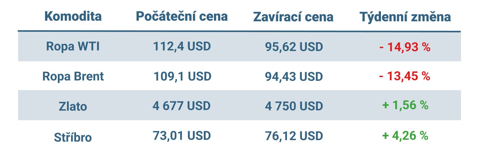Vývoj ceny nejvýznamnějších komodit v uplynulém týdnu