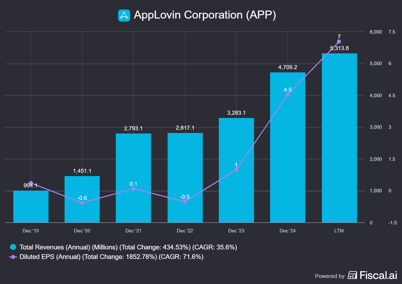 Vývoj tržeb a EPS u společnosti Applovin