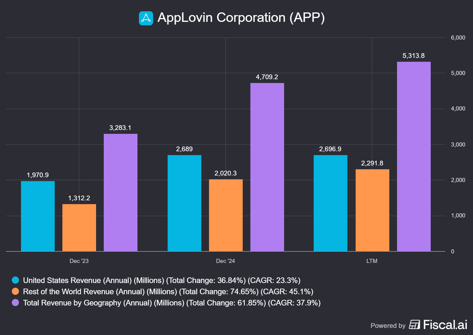 Tržby společnosti Applovin dle geografie