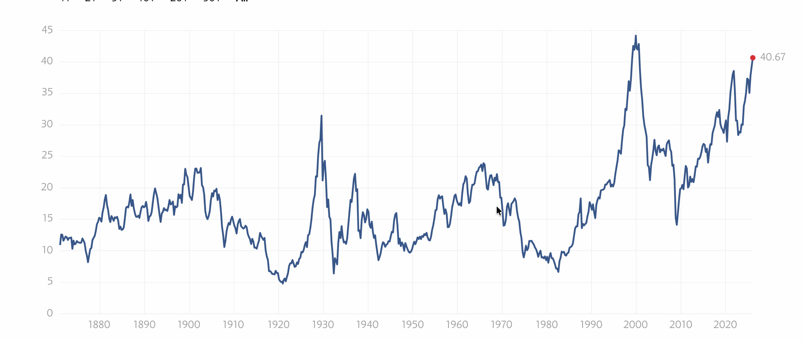 Po více než šesti měsících stabilního růstu se však nad trhem stahují mračna. Naznačuje to minimálně jeden z nejrespektovanějších indikátorů: Shillerův P/E poměr (CAPE). Jak vážná je současná situace?