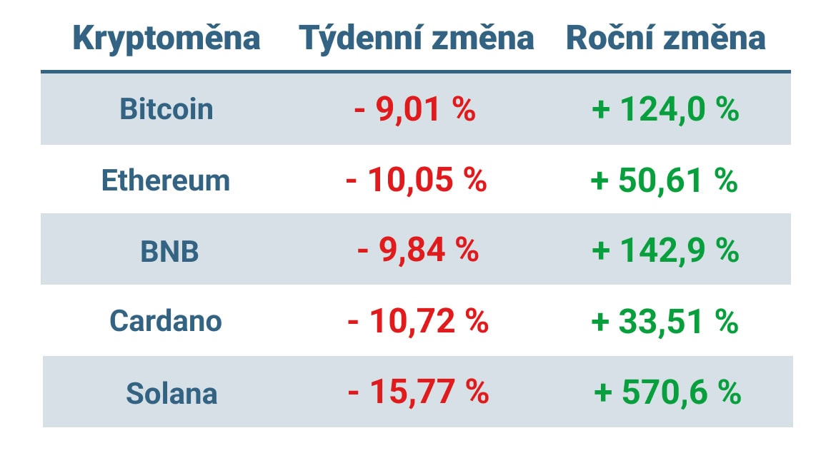 Za týden tak největší kryptoměna ztratila 9 % své hodnoty, což se také přibližně rovná ztrátě za celý měsíc.