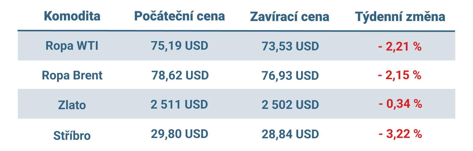 Vývoj ceny nejvýznamnějších komodit v tomto týdnu